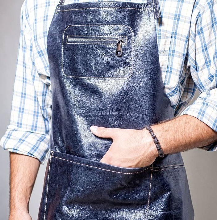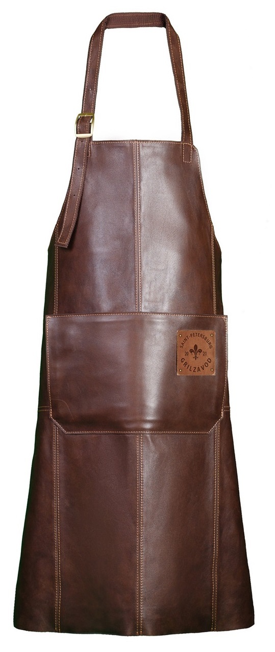 Регулировка по высоте и ширине осуществляется при помощи ремней. Прочная и практичная натуральная кожа позволяет использовать фартук в любой сфере деятельности – на кухне, у гриля, в кузнечном деле, в мастерской флориста и студии барбера.