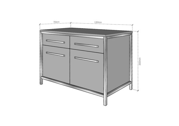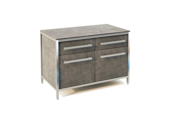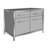 У этого модуля есть два глубоких ящика 600х500х500 мм и два небольших ящика 600х200х500мм., с направляющими от австрийского производителя мебельной фурнитуры Blum, идеально подходящей для уличной кухни.