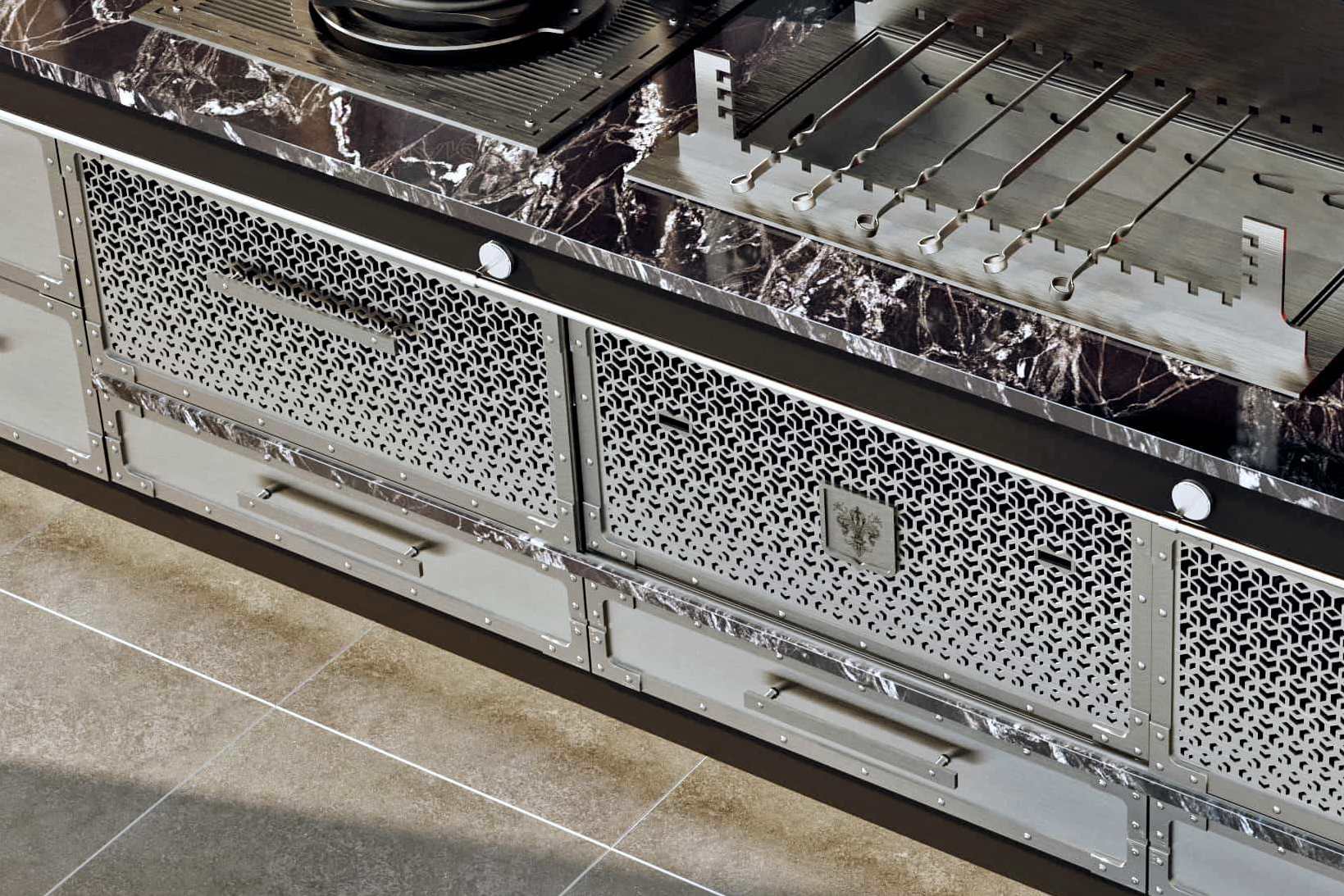 • закрытые полки из нержавеющей стали и перфорированные панели из нержавеющей стали;