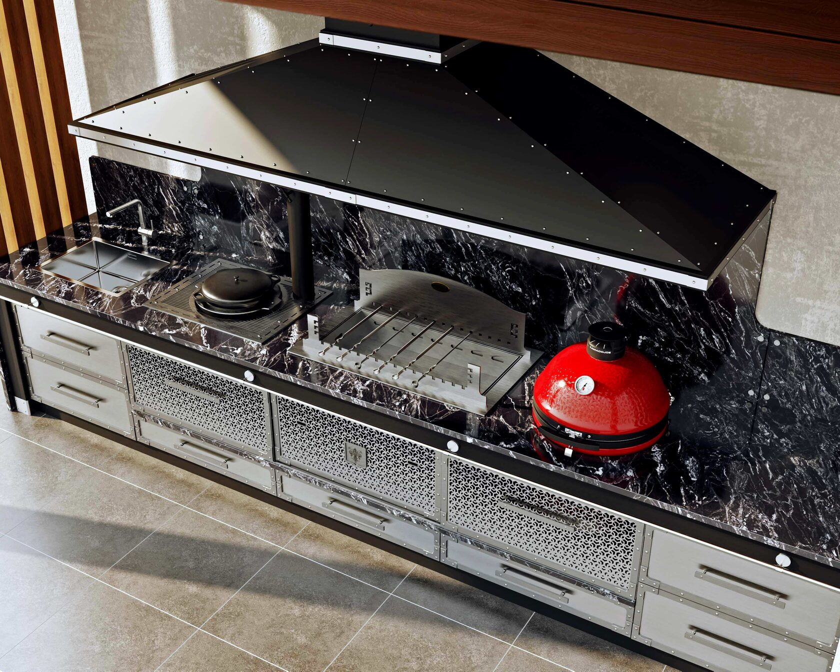 • вытяжка изготовлена из металла с текстурным жаростойким покрытием;