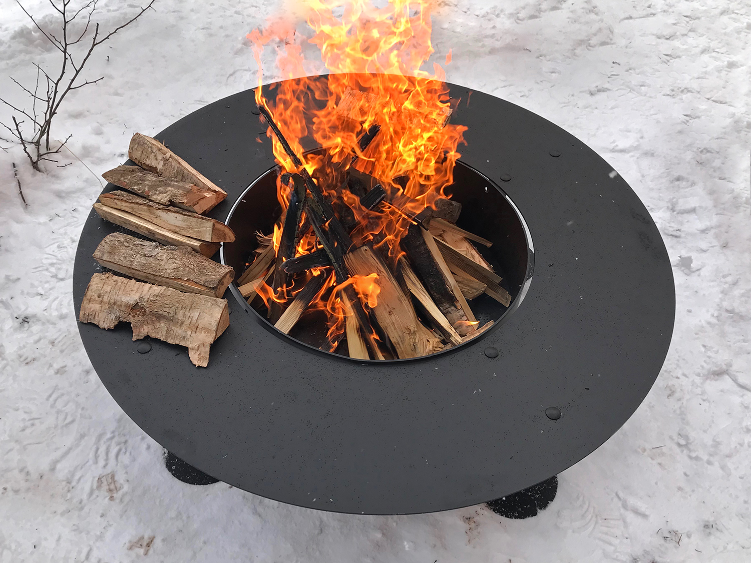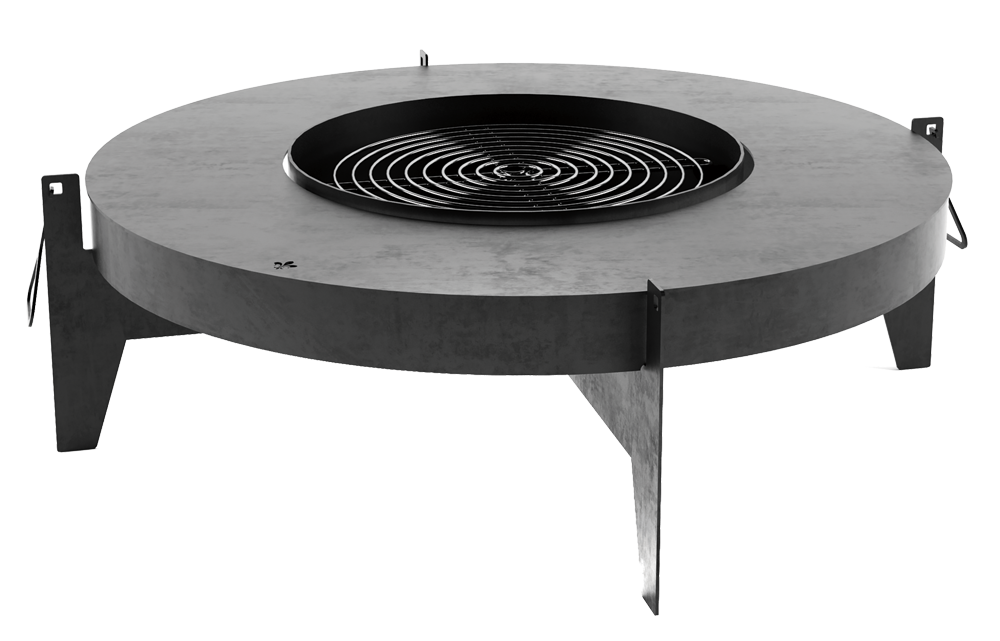 Модель очага BBQ 5 создана для удобного размещения небольшой компании у костра. Вокруг очага располагается столешница, металл которой не нагревается от жара огня и на которой можно разместить заготовки для барбекю, еду и напитки. И любой сможет почувствовать себя поваром и сам приготовить себе вкусную еду.