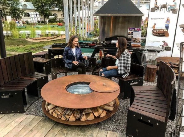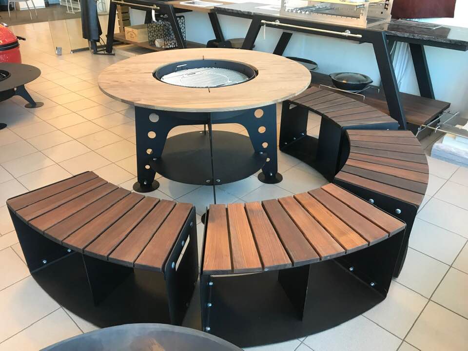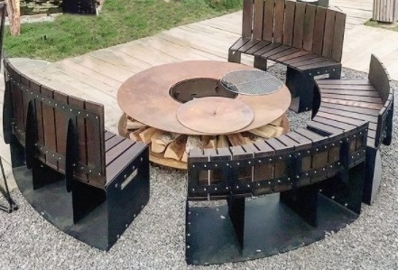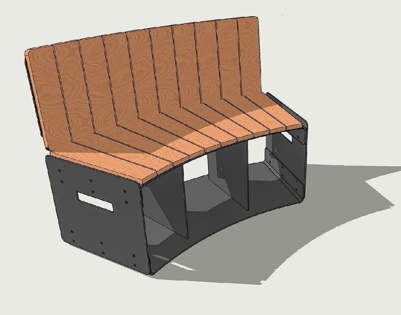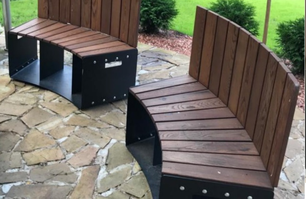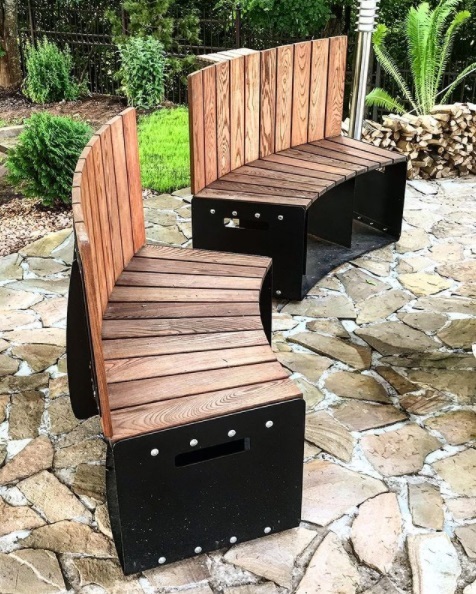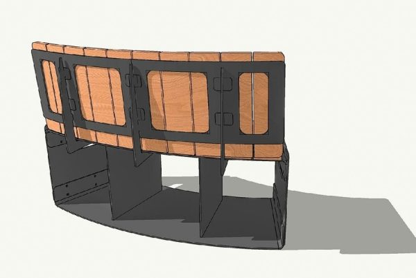 Скамейка радиусная 3-х секционная со спинкой 250 мм и 500 мм.