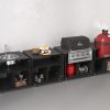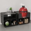 Все модули изготовлены из сверхпрочного металла и покрыты высококачественной порошковой краской. Выдерживают температуру до 200°С. Мобильное и лёгкое передвижение по участку обеспечивают колесики со стопорным механизмом. Имеются полки для хранения кухонной утвари. Задняя стенка модуля выполнена в виде декоративной решётки.