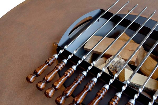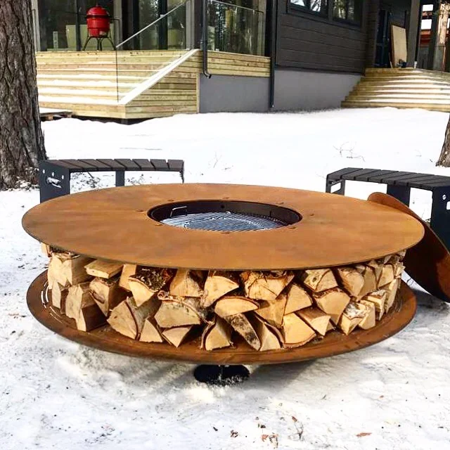 Малый уличный камин и семейный очаг BBQ 1450 CORTEN выполнен из оксидированной стали и имеет приятный терракотовый цвет. Кортеновcкая сталь — «вечная» сталь с бархатистой фактурой, её плотная окисная плёнка (ржавчина) препятствует дальнейшему проникновению воды, к металлу, поэтому сталь, однажды покрывшись патиной, навсегда сохраняет свой коричневатый цвет. Повышенная погодоустойчивость при не ограниченном сроке службы.