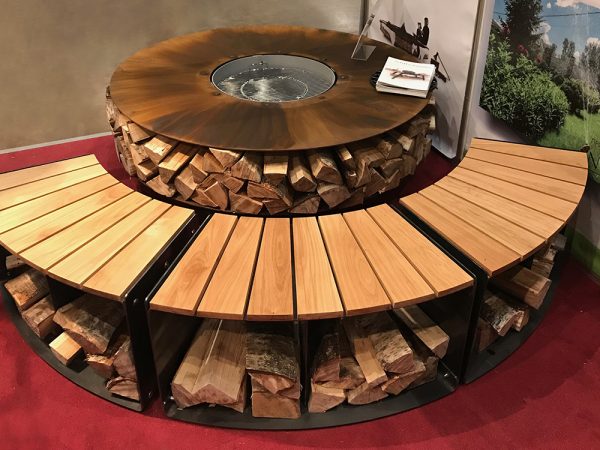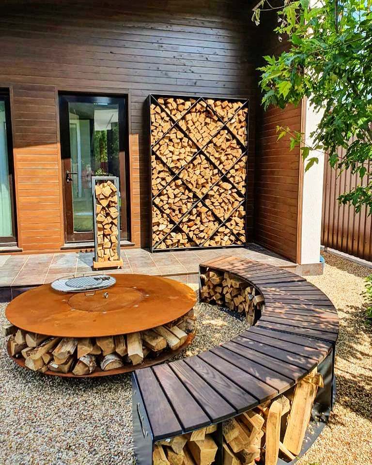 Дровник под столешницей не только красиво, но и удобно, обеспечивает хранение сухих дров рядом с очагом.