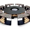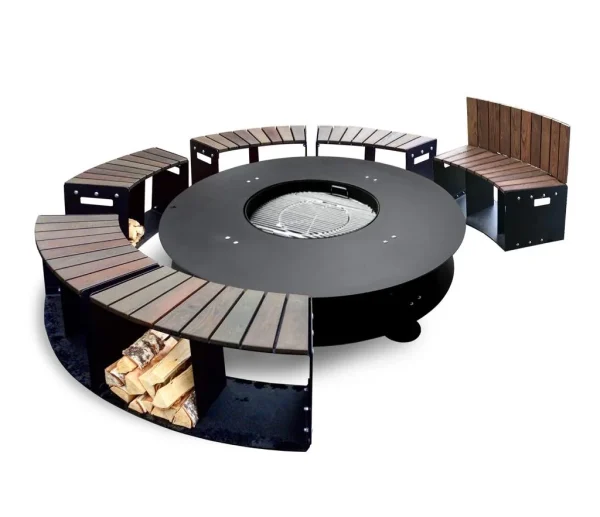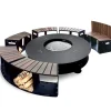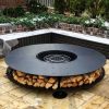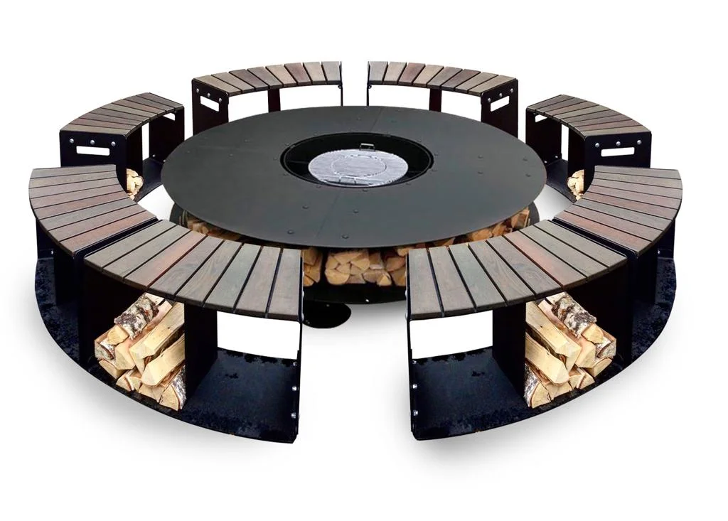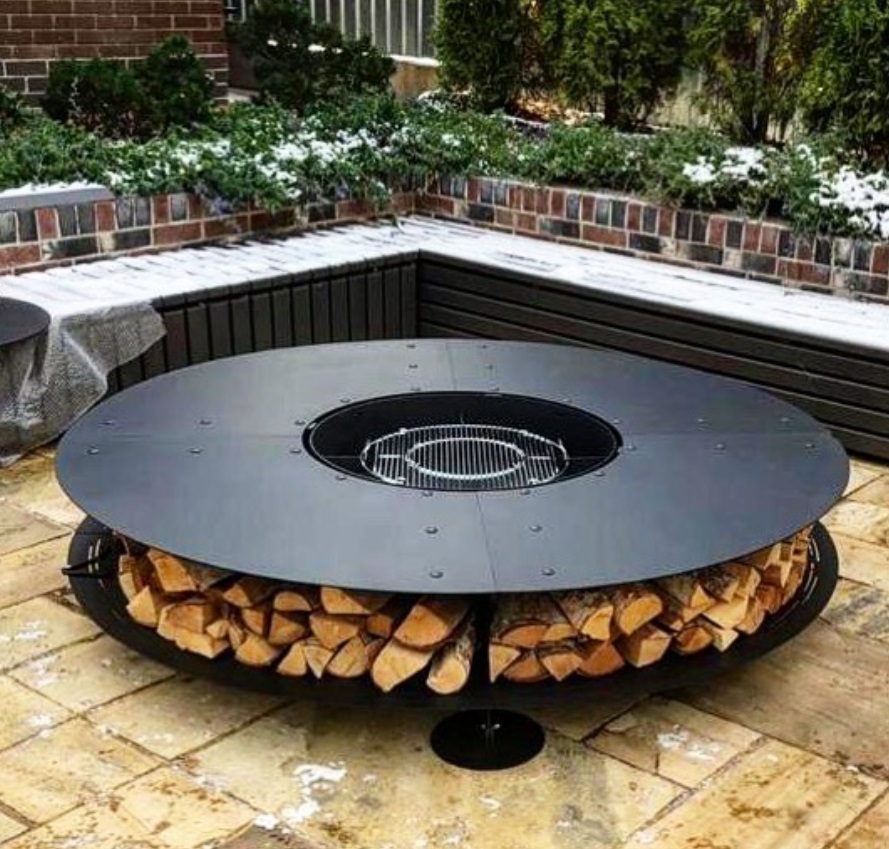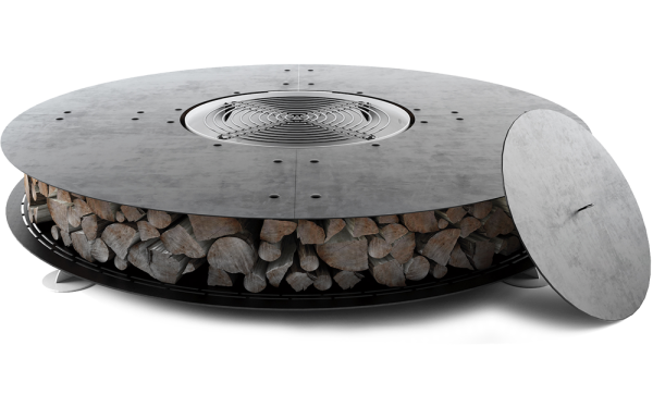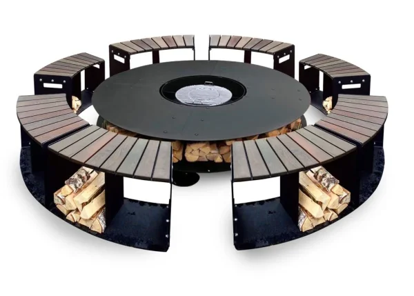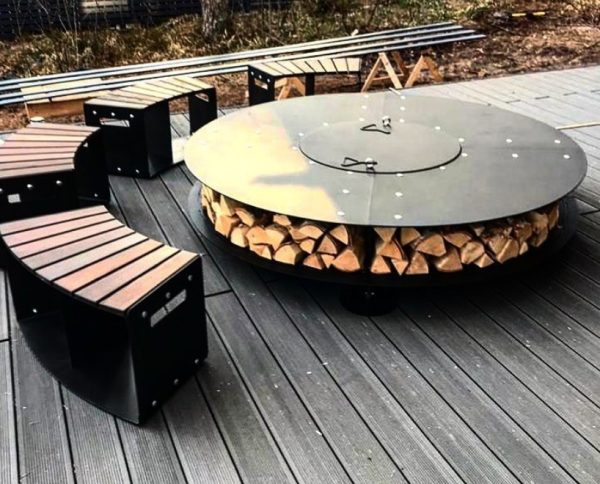 Большой уличный камин BBQ 2000 – главный атрибут на дачном участке в зоне отдыха, большая круглая столешница, вокруг которой может разместиться много гостей и при желании каждый сможет приготовить вкусную еду или выпить бокал вина, любуясь на огонь.
